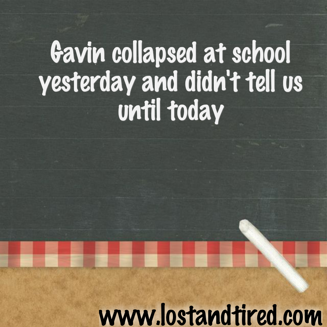 I slept like crap and so I'm not in a really good mood. Right before Gavin leaves for school this morning, he decides that now would be a great time to let me know that he *collapsed *while at school yesterday.