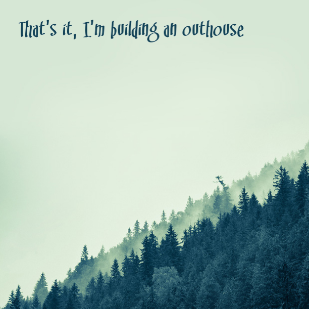 The toilet is clogged beyond my ability to plunge it once again. I'm so tired of Gavin clogging the toilet that I'm gonna just build the kid a fricking outhouse.