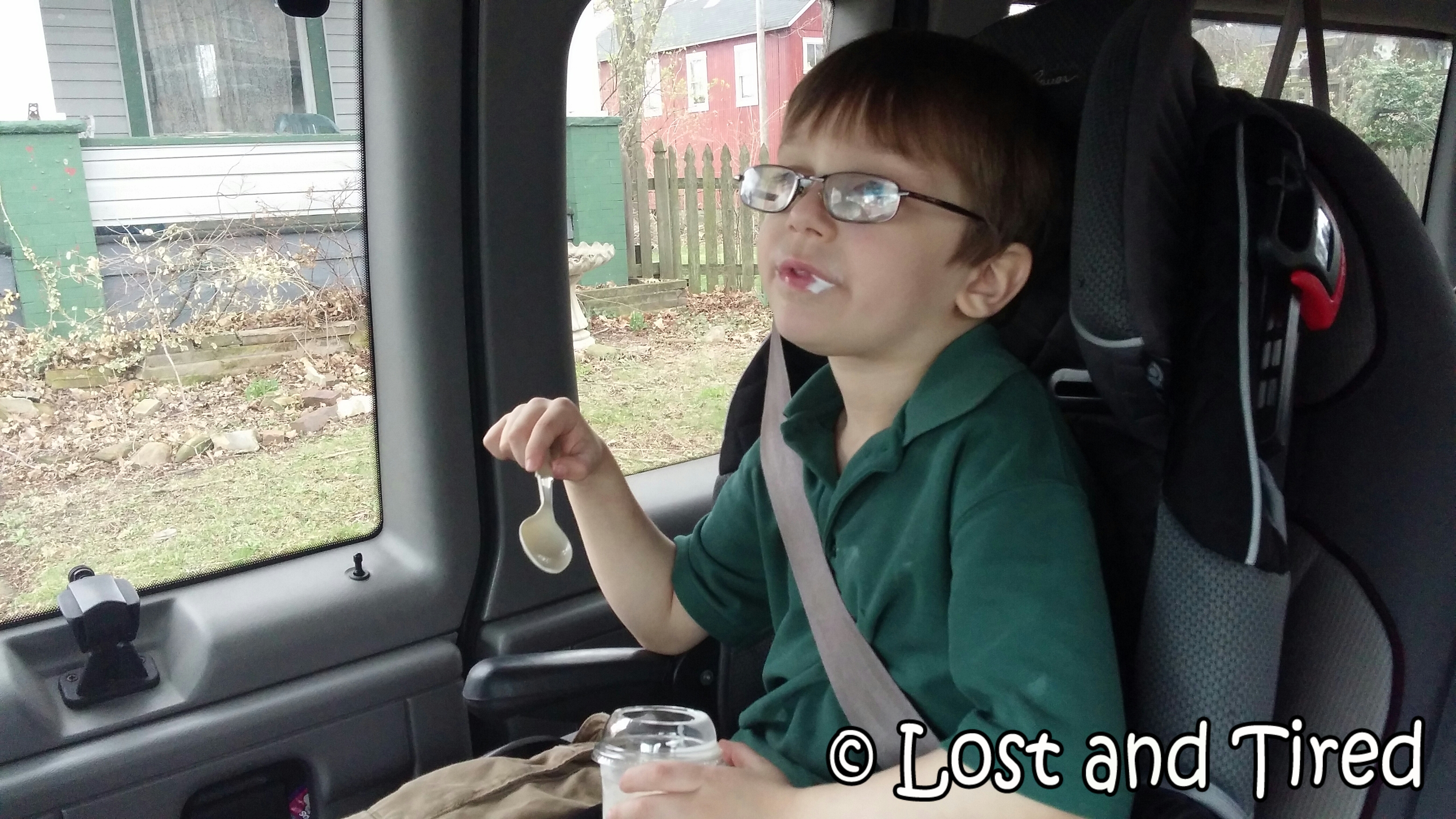 I told him that on the way home, we would get a *Frosty *from Wendy's. It worked and he was willing to let me try his shoes and socks just one more time..