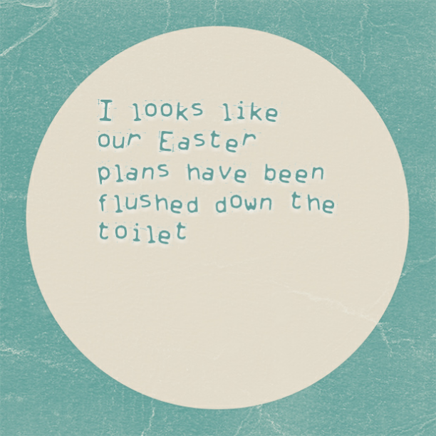It looks as though our Easter plans have been flushed down the toilet. Well not our toilet because it's still Gavin clogged.