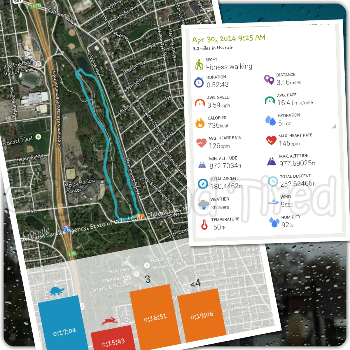 We decided that we would try and tough it out. The rain never really slowed down but we squeezed out almost 3.25 miles.
