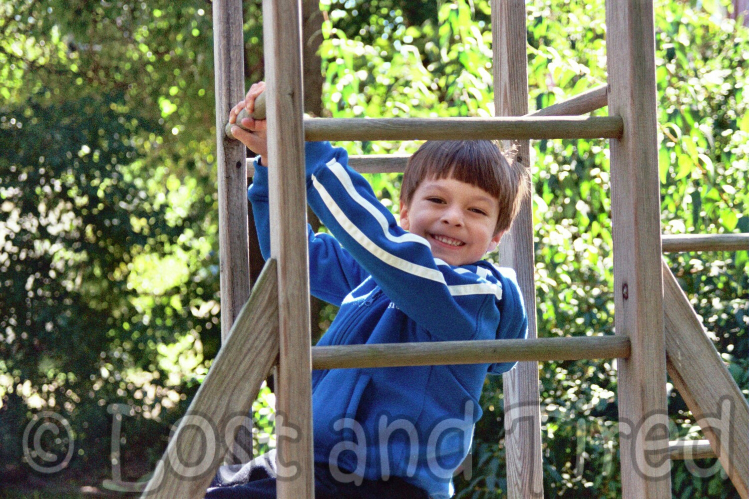 I don't remember the details surrounding this picture but it was taken in our backyard, while Gavin was on the slide.