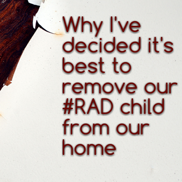 Allowing him to continue living here, isn't fair to anyone, including Gavin. He's set up to fail because kids with RAD don't do well within the family dynamic. We're essentially asking more of him than will ever be possible.