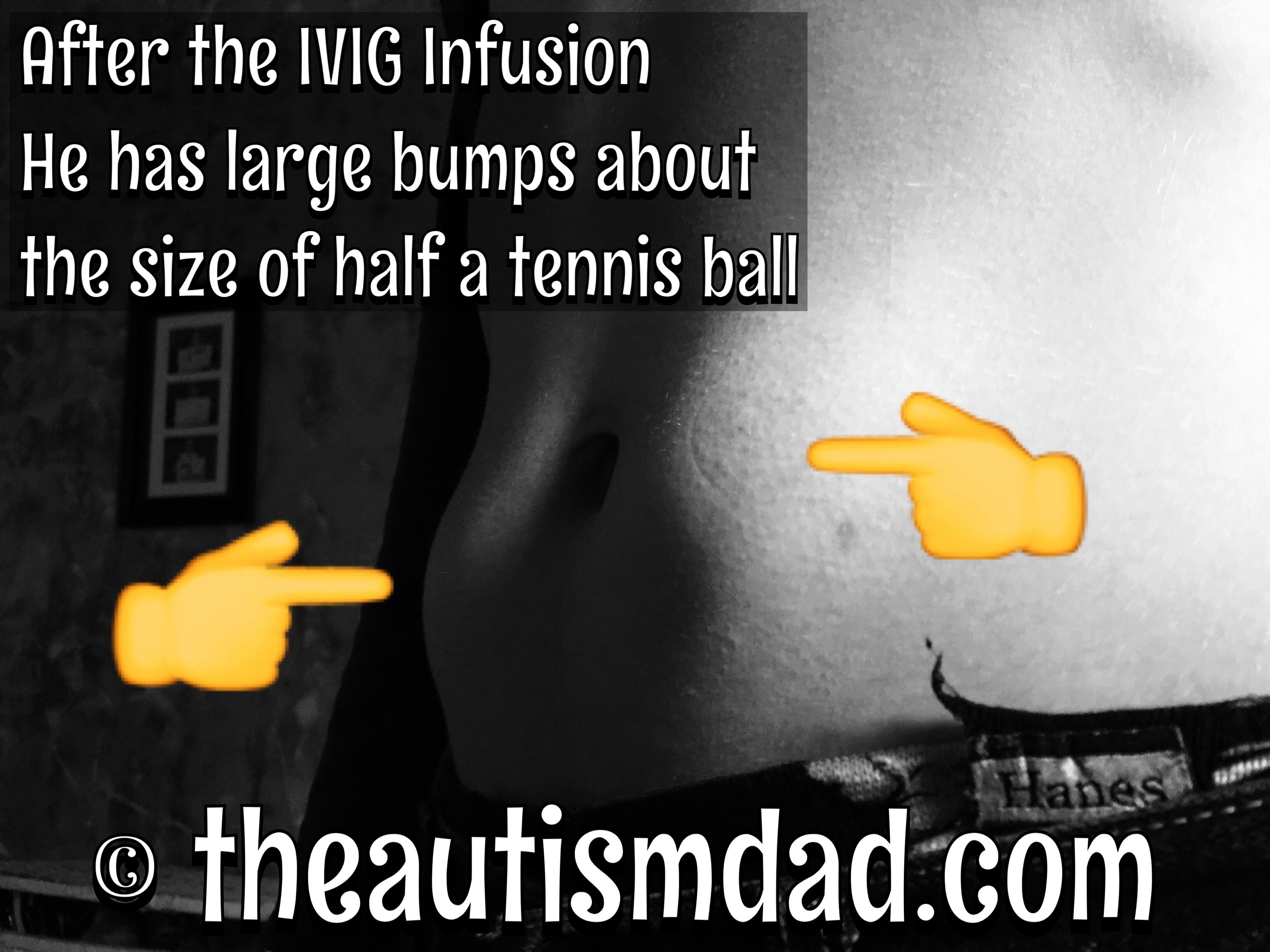 I really think that says a great deal about him as a person. Just since we began doing these infusions at home about two years ago, he's had over 416 needles stuck into his belly. How many of us could so that and not complain? I'm not sure that I could..