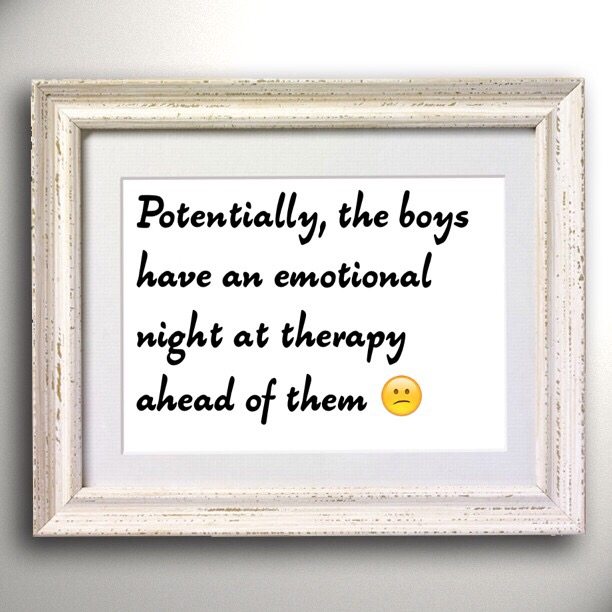 The idea behind this type of therapy session, which frankly shouldn't be special because it should be happening on a more regular basis, at least in my opinion, is to facilitate a dialogue and provide the boys with a safe place to share how they feel with their Mom.