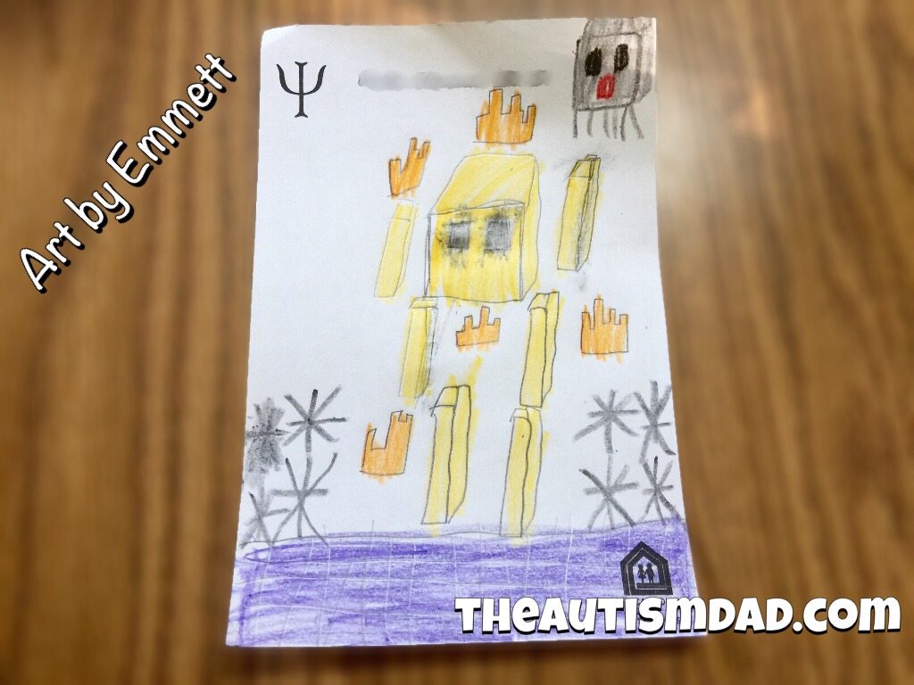 I wanted to share this cool picture that Emmett did while in therapy tonight. I believe this is called a *Blaze* and its from Minecraft.
