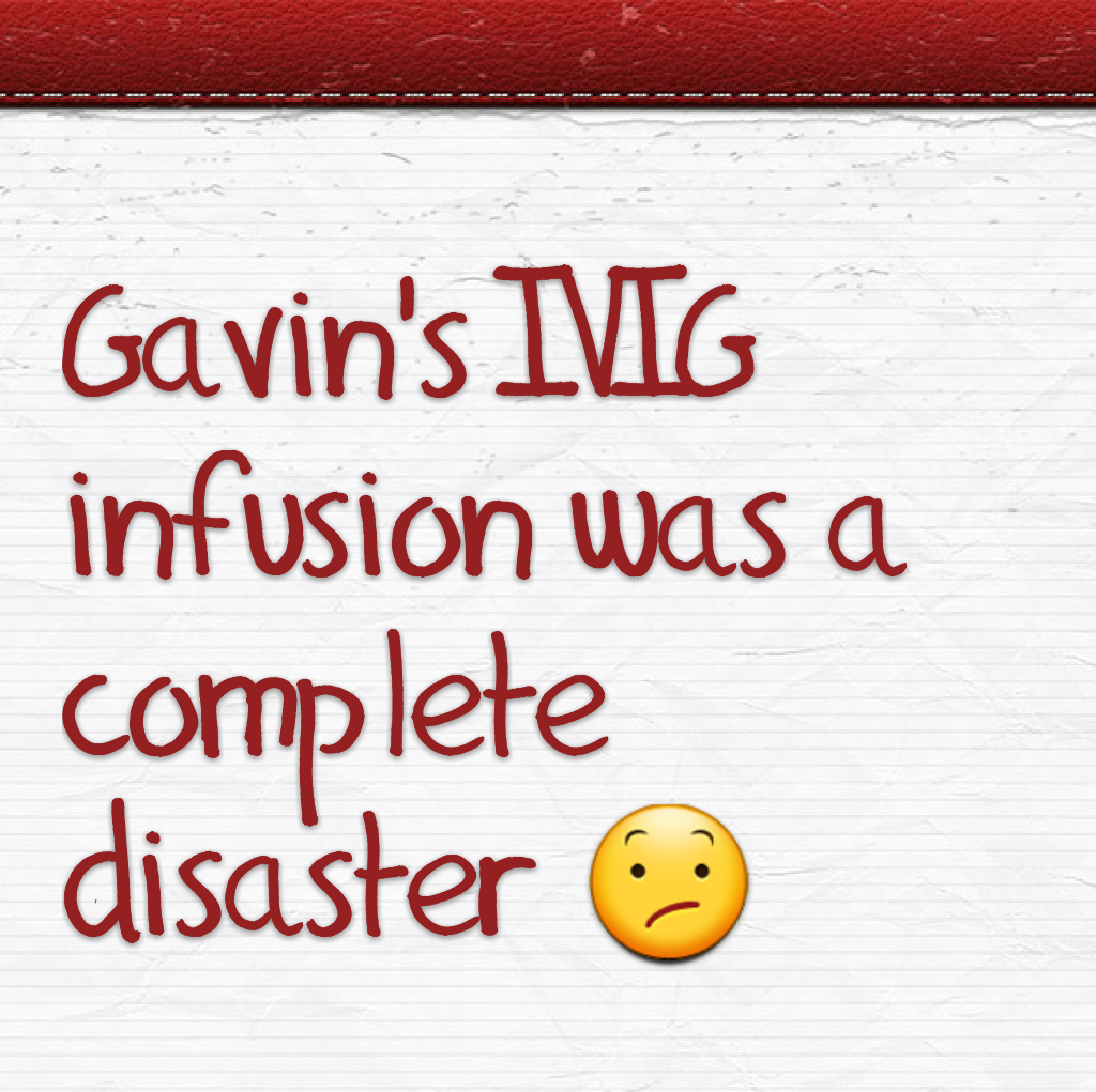 I mentioned earlier that we were all excited because Gavin got new tubing for his IVIG Infusions that have historically reduced the infusion times significantly..