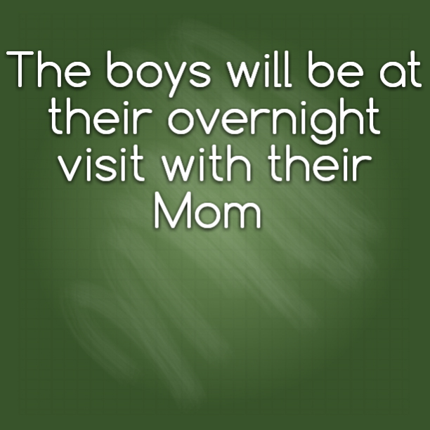 The boys have their every other other Friday, overnight visit with their Mom and Grandparents tonight.