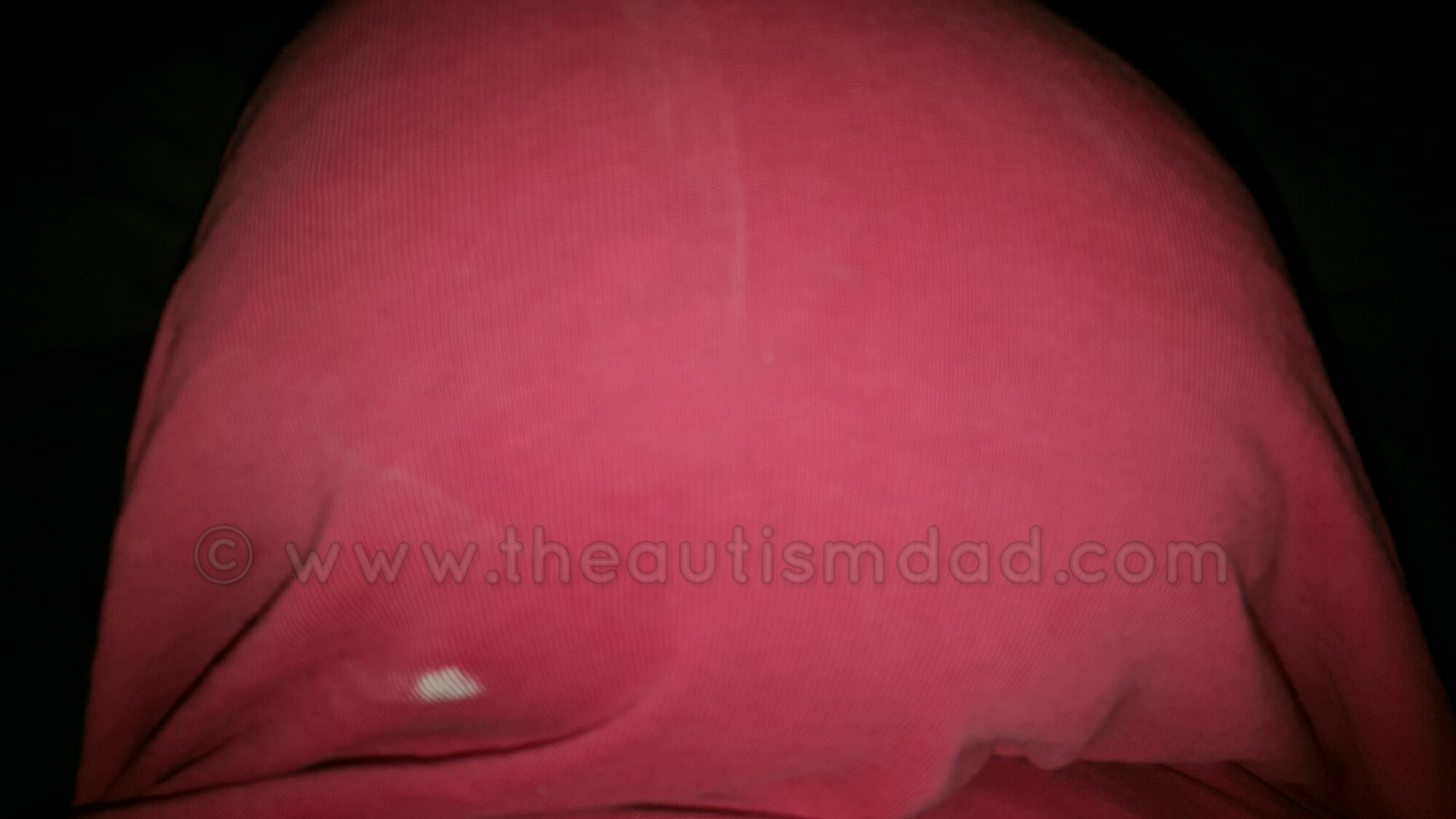 The red you see happens to be the shirt I wore to bed last night. I'm laying on my back and the giant red bump, is Emmett's head.