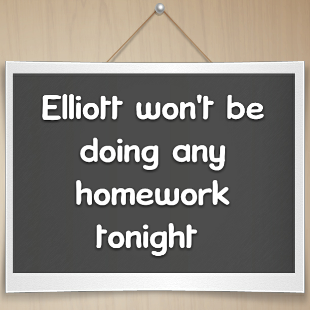 Elliott won't be doing any homework tonight because HE'S ALREADY DONE.!!.!!.