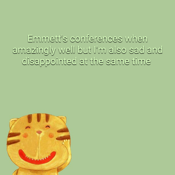 I was angry at first because a huge deal had been made about setting this meeting up and not by me. I see the teachers every single day, so conferences aren't usually necessary for me. This wasn't for my benefit but for hers and hopefully Emmett's as well.