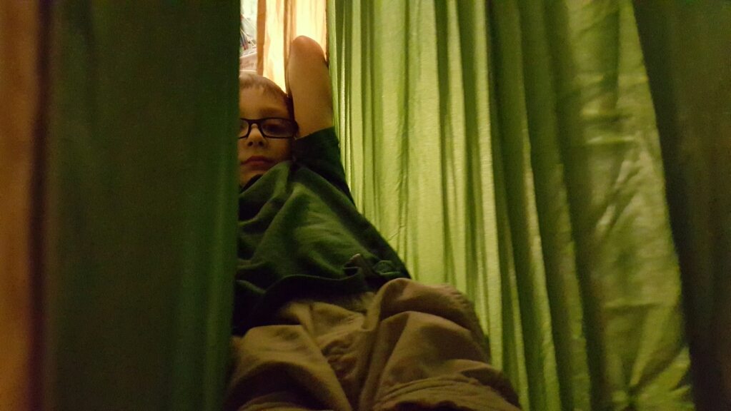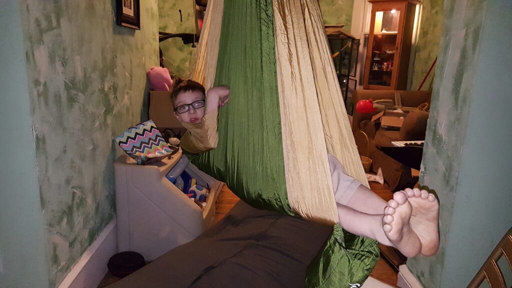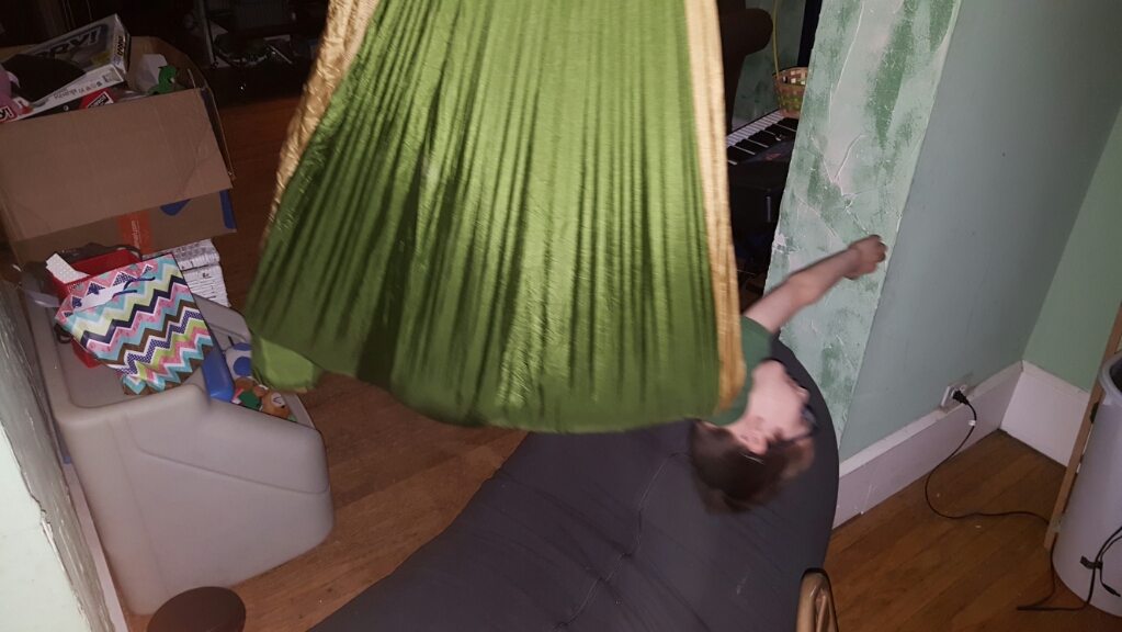 This is a sensory swing, similar to what he has at occupational and physical therapy. He really, really responds to the swing at therapy and I wanted to bring that into our home.