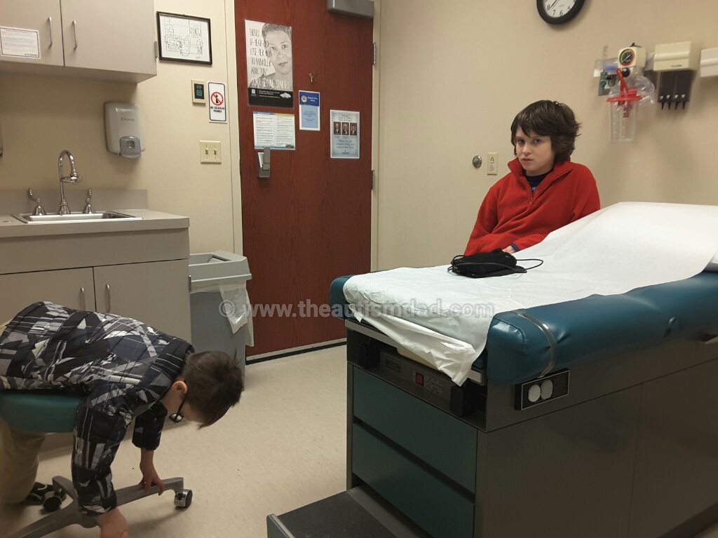 When the nurse came in to do vitals and histories on both boys, Elliott did awesome, as did Emmett. Soon after the doctor arrived in to check them both out.