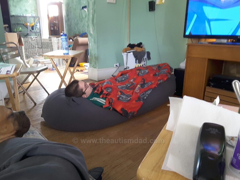 Gavin on the other hand has either been sleeping or crashed out on the beanbag chair. He says he's feeling fine but he looks like death warmed over...
