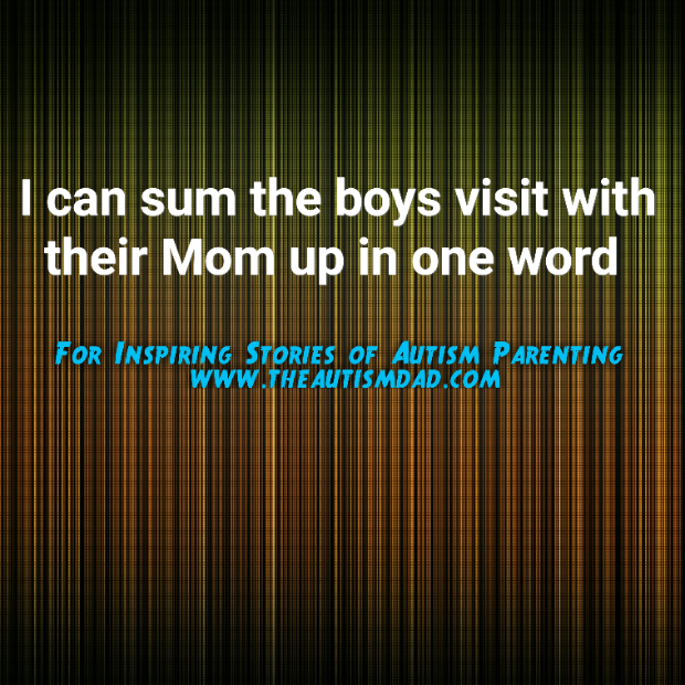 So far as I can tell, the boys visit with their Mom can be summed up in one word and that word is *good. *Everyone came home in a good mood and there hasn't been any fighting. ☺