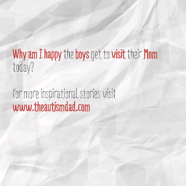 The boys will be going to visit their Mom tonight. They spend about 24 hours there, before returning home. For the most part, these visits have been going pretty well. Largely, the boys look forward to going or at the very least, no longer complain about having to go.