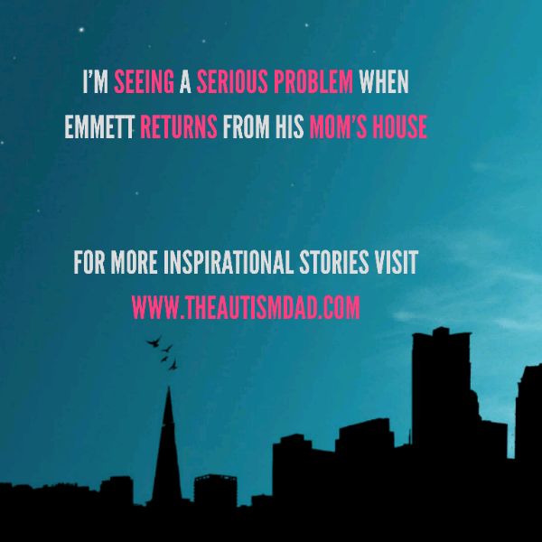 Emmett's been doing this on the days he comes home from an overnight stay with his Mom.