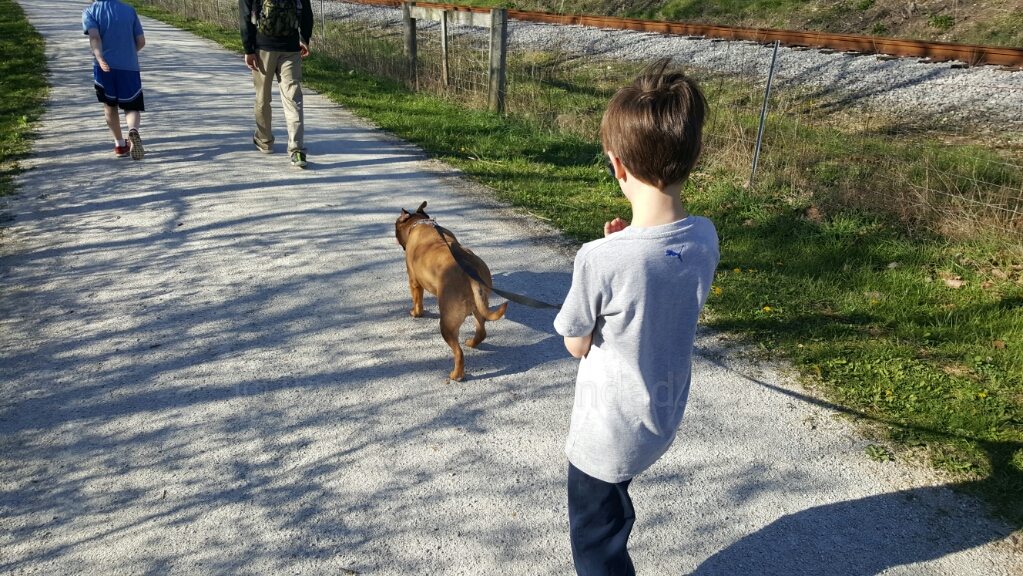 As we got to the end of the path, I finally caved in and let Emmett walk with Maggie and she did really well. She did really well until a rabbit came out of nowhere and darted after it.