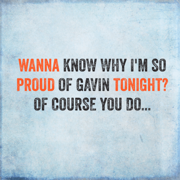 I want to take a minute and share how proud of Gavin I am tonight. It's not like I'm not proud of him any other time but he really rose to the occasion today.