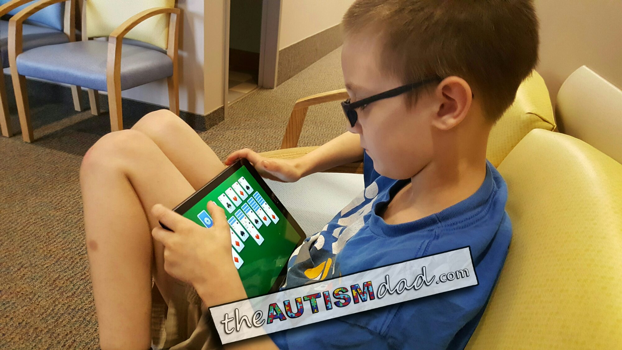 We actually arrived about 15 minutes early so he has to wait a few minutes but he's being very patient and killing the time with a game of Solitaire... ☺