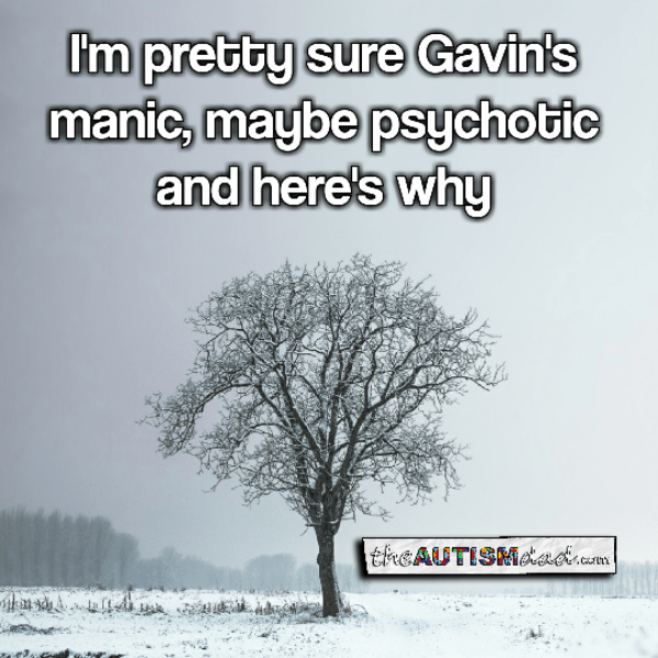 When I refer to him as being psychotic, that simply means he's lost touch with reality. It doesn't mean what most people think it means. It's sort of a step above manic, if that makes sense and it's just something that Gavin experiences from time to time.