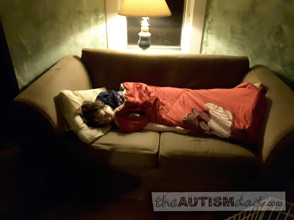 I figured the best chance of anyone getting sleep was to camp out in the living room.