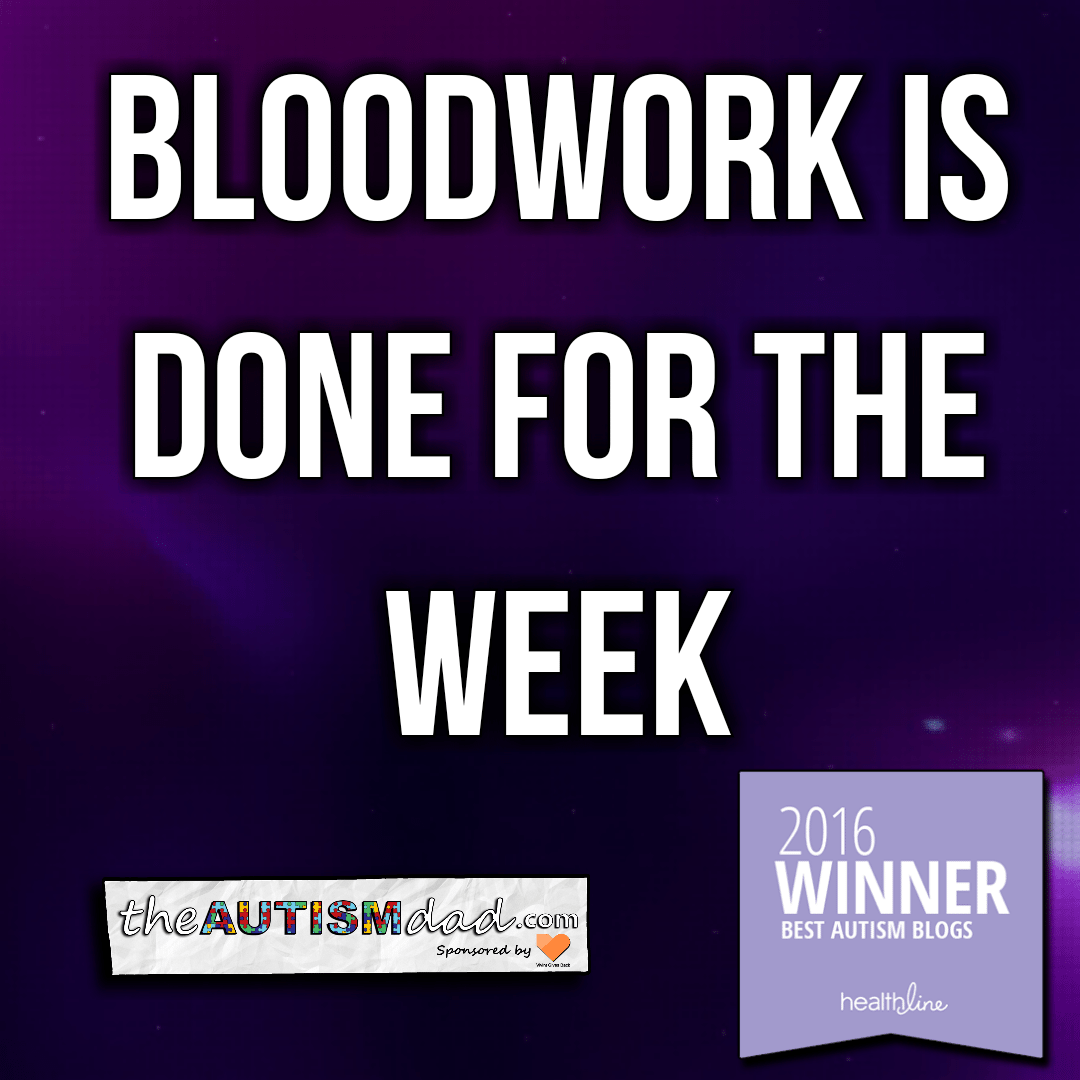 Today's trip to the lab marks the end of this week's round of bloodwork.
