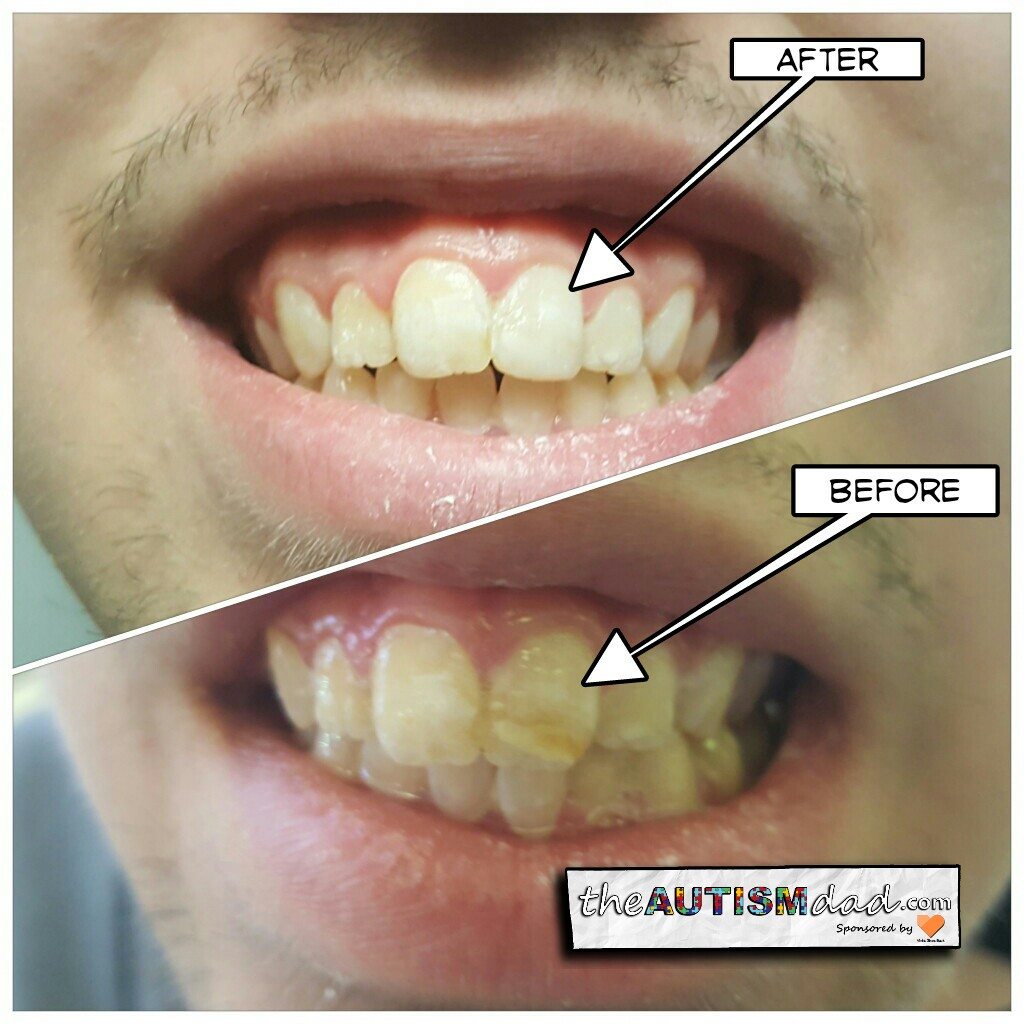Either way, there was a dark brown line running across his front left tooth. It was really rough and always collects whatever he had eaten.