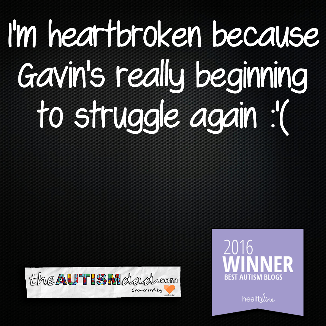 One of the hardest things I deal with on a personal level is the guilt I feel for being frustrated with Gavin as a result of these things he's going through. I'm overwhelmed when he bombards me with his missions and incessantly talks about his latest tablet games.