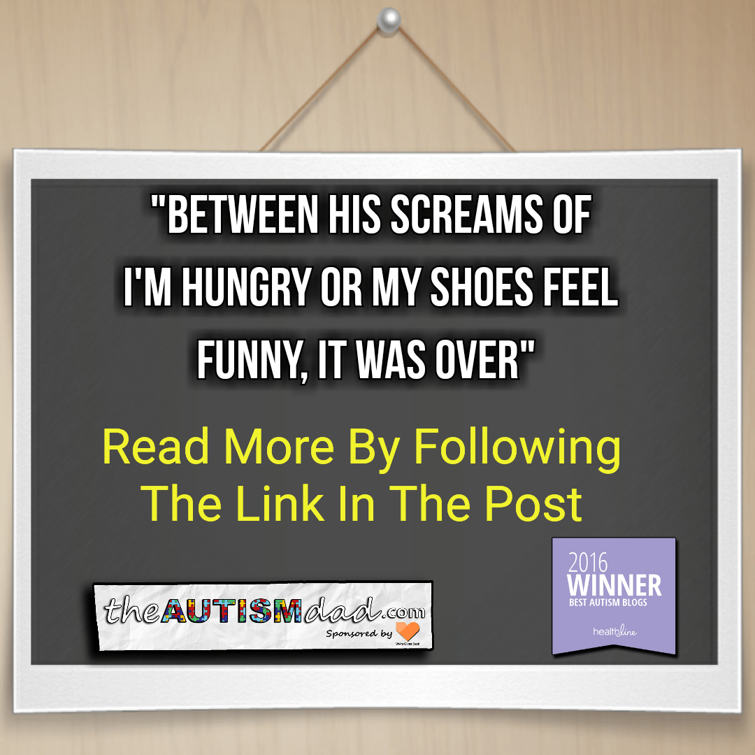 Between his screams of *I'm hungry* or *my shoes feel funny, *it was over.