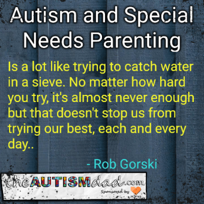 Having said that, there's a universal truth when it comes to Autism or Special Needs parents. No matter what, we will spend all day, every day, trying to catch as much water in that sieve as we can because we love our kids so much.