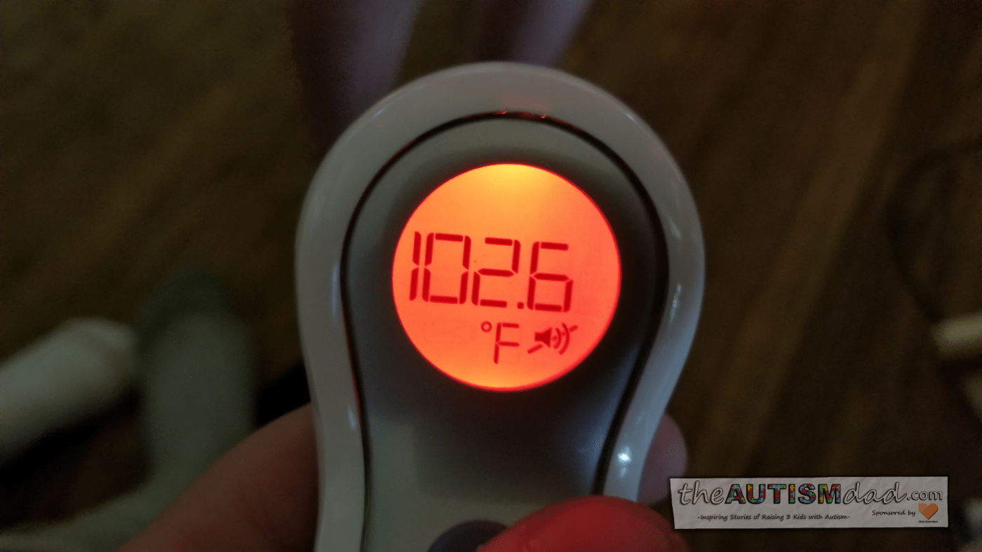 He kept saying he was okay, but it wasn't very convincing. I gave him a little bit to settle in and then I took his temperature. Unfortunately, my instincts we right and he was running a relatively high fever.