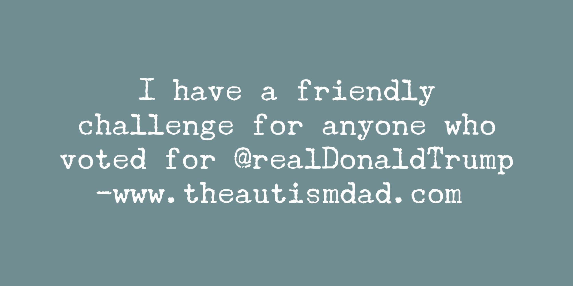 This is totally off topic but I'm frustrated, angry, and frankly scared of where Donald Trump is taking our country. As a special needs parent, I'm terrified of what the future holds for families like mine, as a result of a Trump presidency.