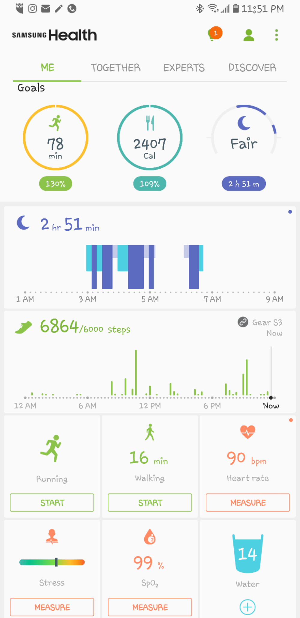 I use a combination of Samsung Health and myfitnesspal to track everything. I'm using my Gear S3 to track all my biometrics, but for some reason it wasn't tracking floors today.