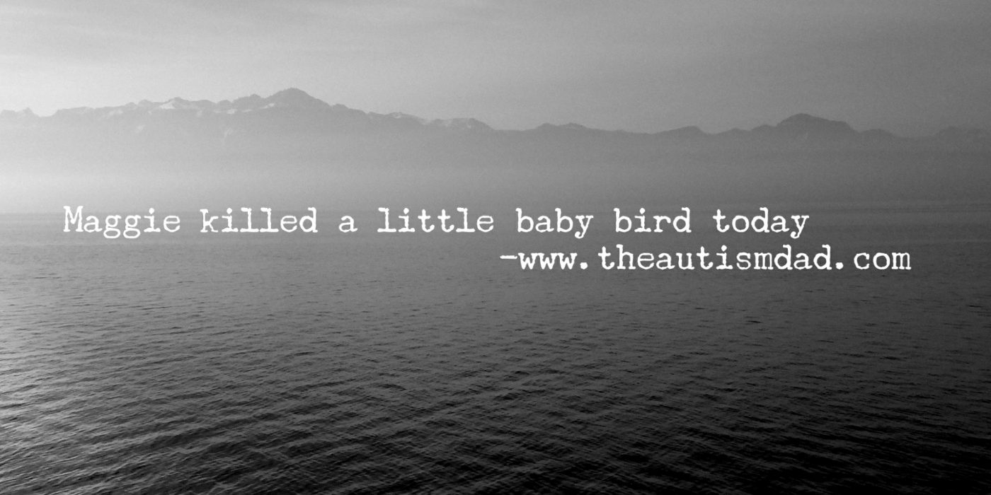 As I went to gently move it, the unthinkable happened. It began flapping around the yard and Maggie went after it. The only positive thing is that it was over instantly, and the poor thing didn't suffer.