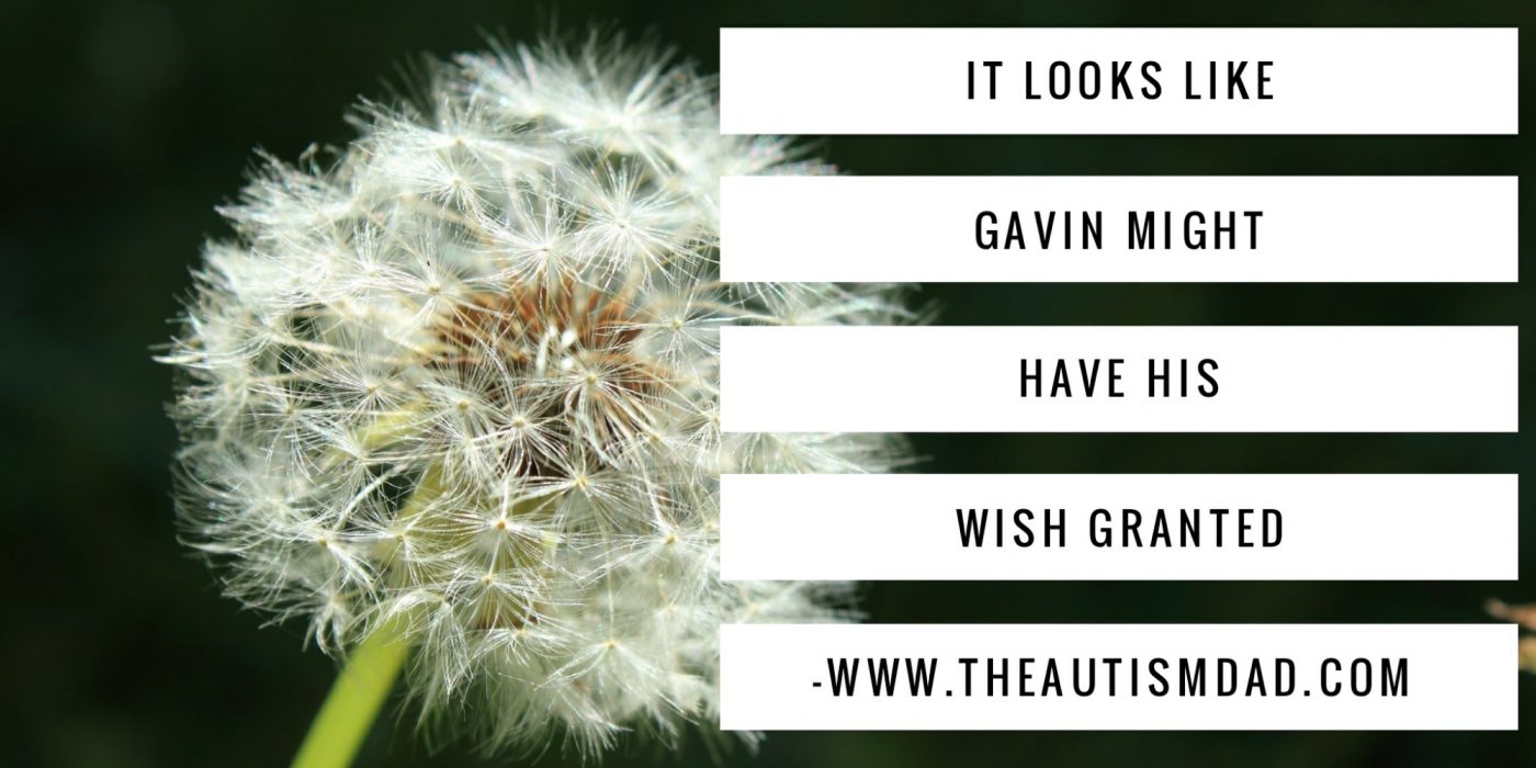 Over the phone, we designed a wish for Gavin that is pretty amazing. It will involve a 1 week trip to Orlando. We will be staying in a two bedroom condo, and receive tickets to all the amusement parks in the area, including Disney, Universal Studios, and Lego Land.