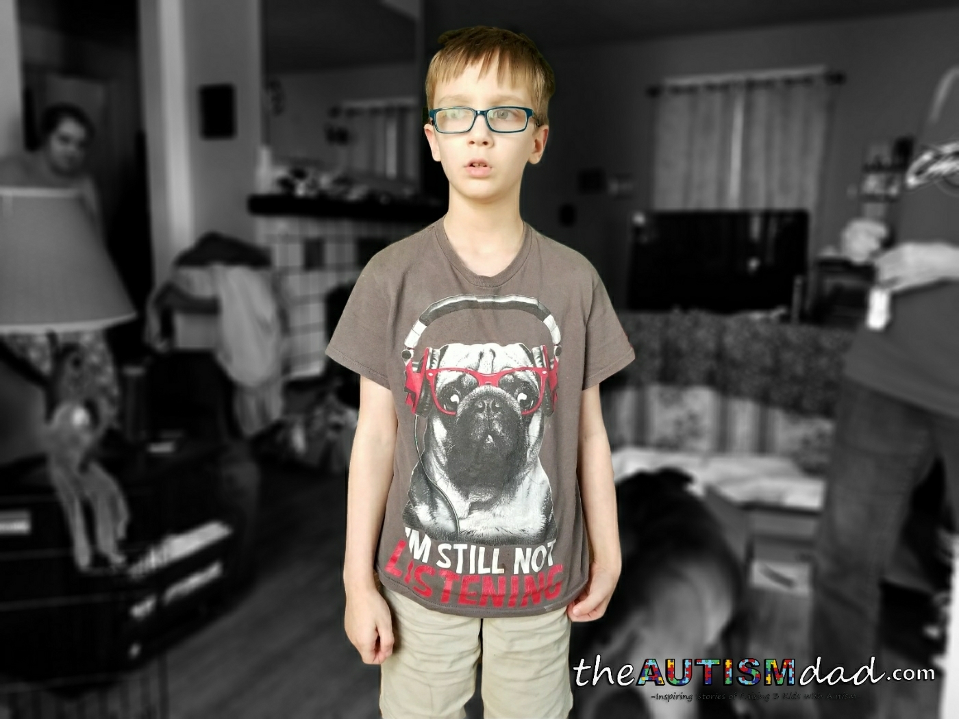 Emmett had a pretty rough morning today. He was really upset about his inability to wear different shirts because of how they feel on him. He's been wearing the same shirt to school every day because it's the only shirt that doesn't bother him.
