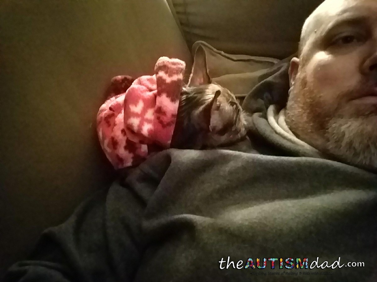 I've been working with her to lay next to me and not necessarily on me. We're making progress and it's pretty fricking adorable. As much as I fuss about how annoying it is when I'm trying to work and she won't leave me alone, who wouldn't just melt with her sleeping like this... ☺