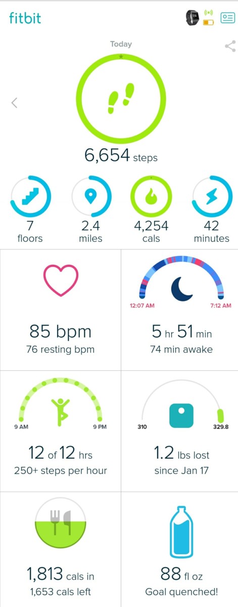Check out the screenshot from the Fitbit app, detailing my efforts for today. I still have a long way to go but every step forward gets me one step closer to my goal.