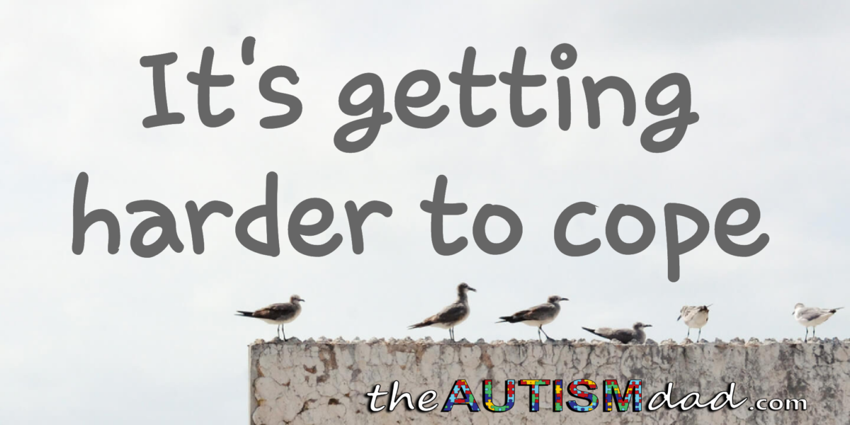 The emotions I'm experiencing in regards to coping is probably two fold. It's part frustration because Gavin's functioning at maybe fifty percent of what he was, say two years ago. The other part is pure, unadulterated heartache because he's only functioning at maybe fifty percent of where he was two years ago.