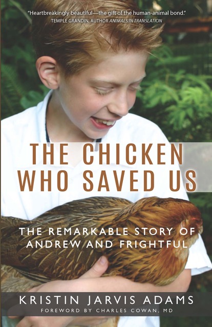 Kristin Jarvis Adams is the author of The Chicken Who Saved Us: The Remarkable Story of Andrew and Frightful. She can be found at **www.kristinjarvisadams.com**, or on Facebook at Kristin Jarvis Adams, Author.