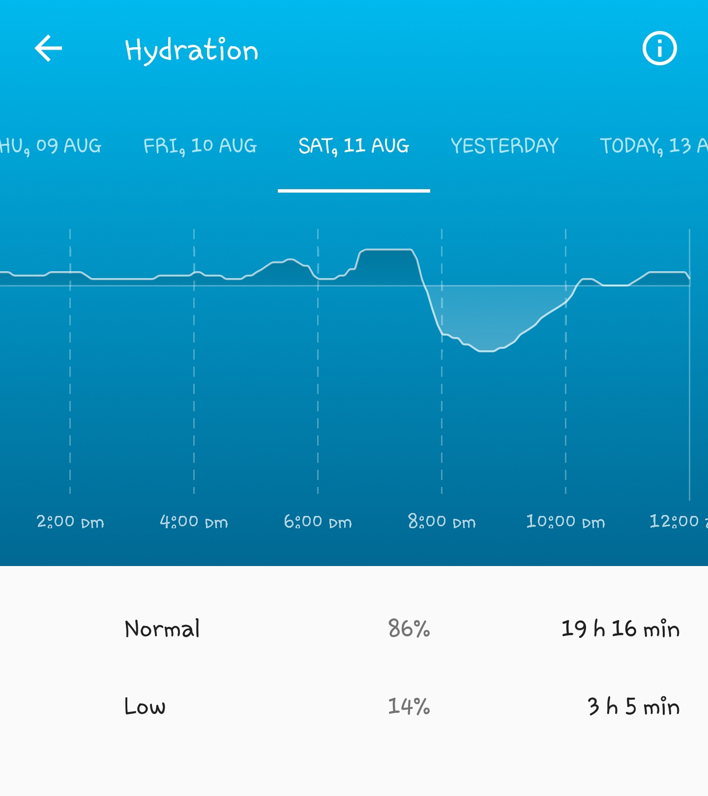 I really like the ability to monitor my hydration because it helps me to make sure I'm hydrated based on my actual levels and not an arbitrary number of ounces I'm told to drink each day.