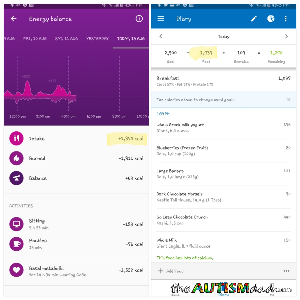 Please note that MFP wasn't reflecting calorie burn from exercise when I took the screenshot, I was having some sync issues.