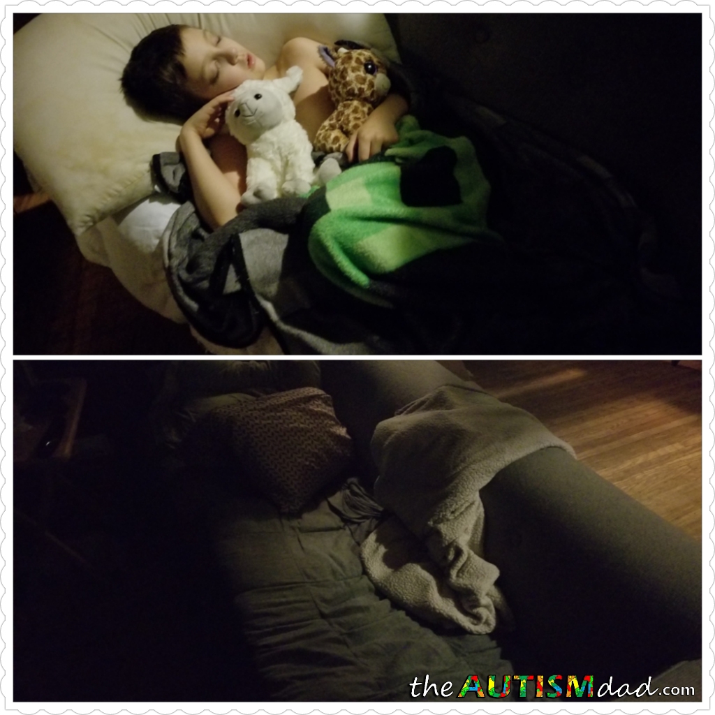 The last few night, Emmett's really struggled to fall asleep at night because he's afraid he'll have another nightmare. Tonight was so bad that I opted to simply set him up on the love seat in the living room, while I crash on our dilapidated couch a few feet away.