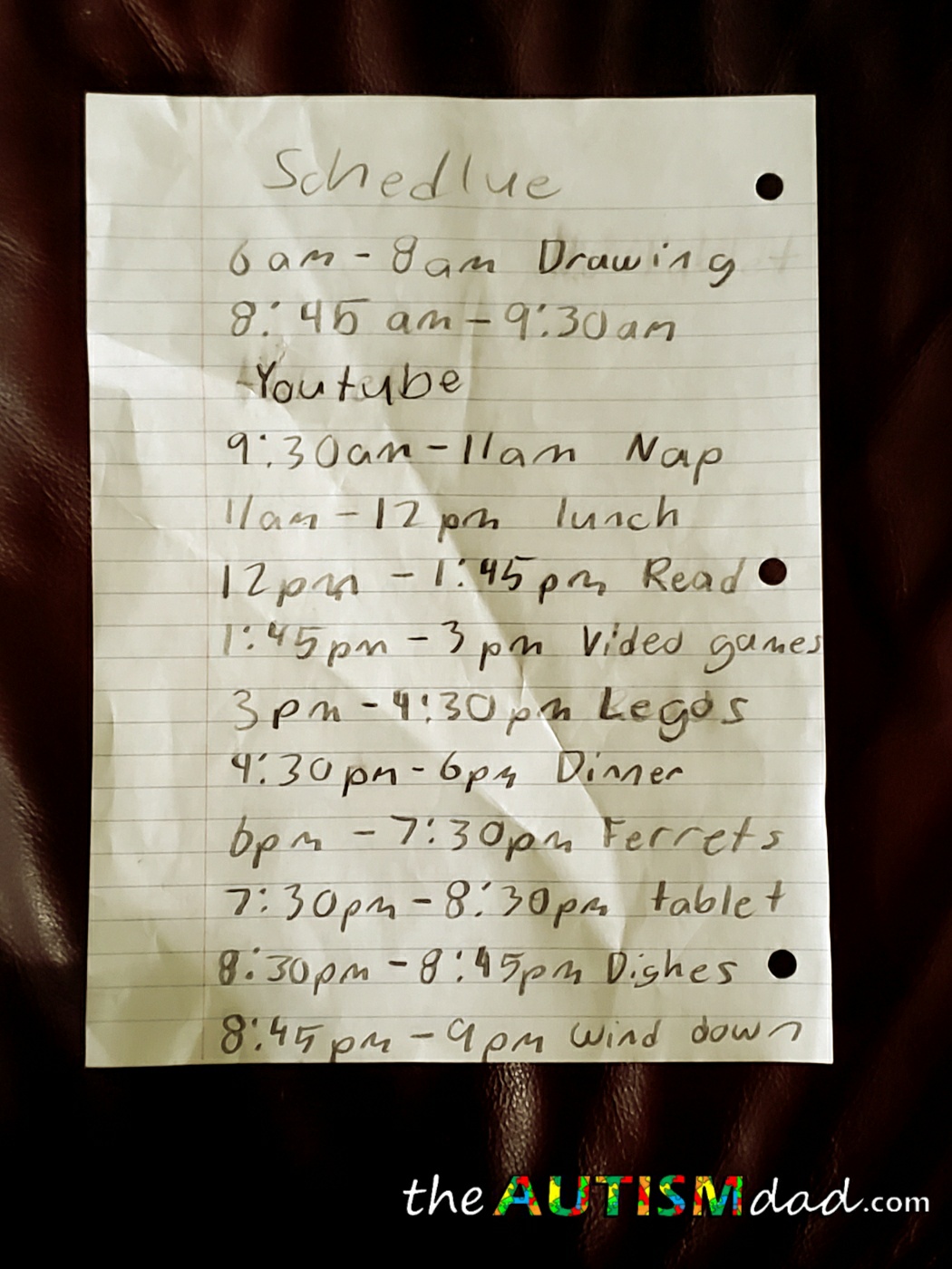 Yes, I understand that's he's eighteen. I understand that he has the paper backwards and he wrote this in jumbo pencil. I also noticed there's at least one chunk of time missing but none of that matters.