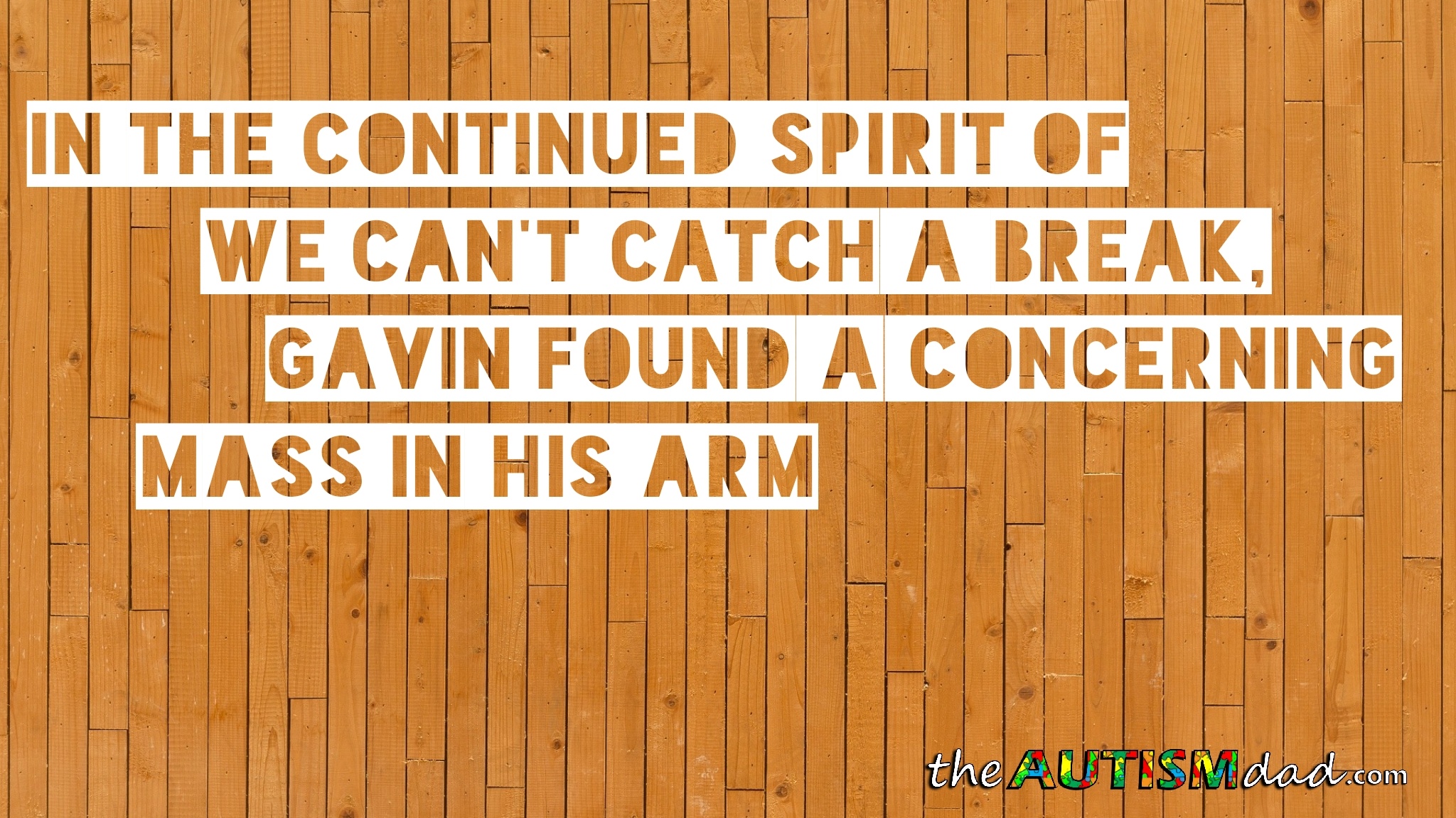 Gavin came home from his Grandparents house on Monday afternoon. Shortly after he got back, he brought to my attention that he found what he describes as a *lump *on his right forearm.