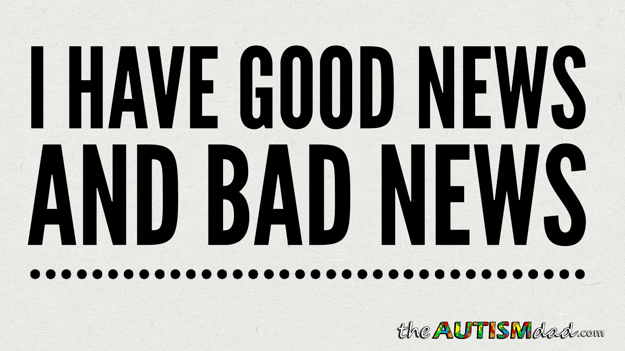I want to begin the week with some good news. It's actually a good news/bad news kinda thing.