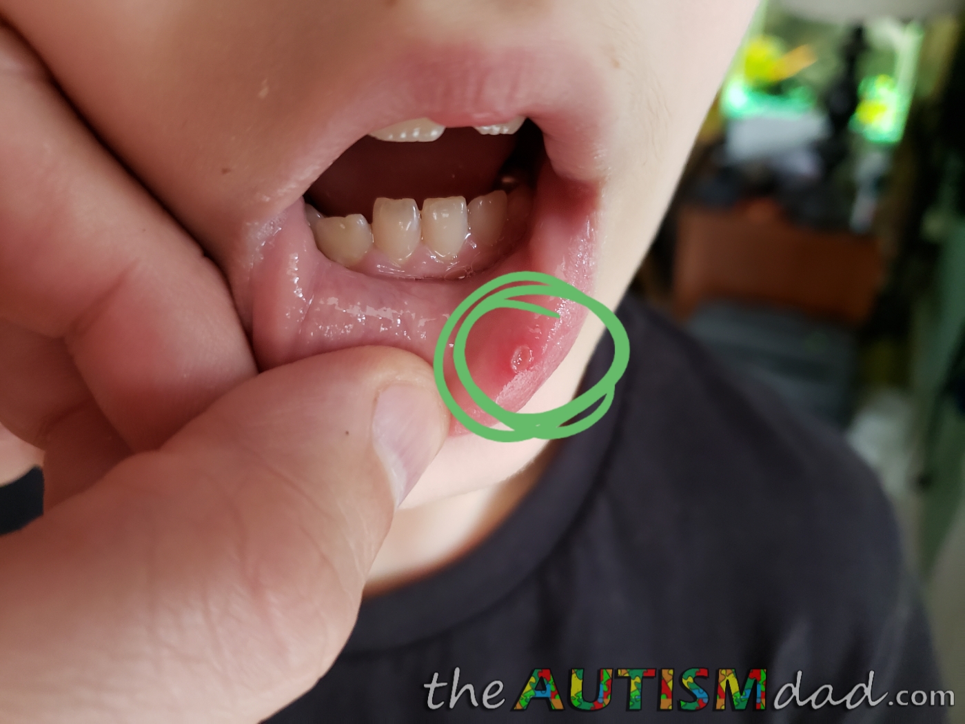 He will get these sores all over the inside of his mouth and down the back of his throat. It's awful for him and he's miserable for the week or so they're present.