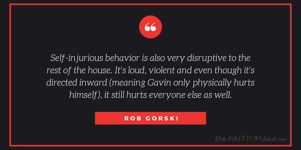 Self-injurious behavior is also very disruptive to the rest of the house. It's loud, violent and even though it's directed inward (meaning Gavin only physically hurts himself), it still hurts everyone else as well.