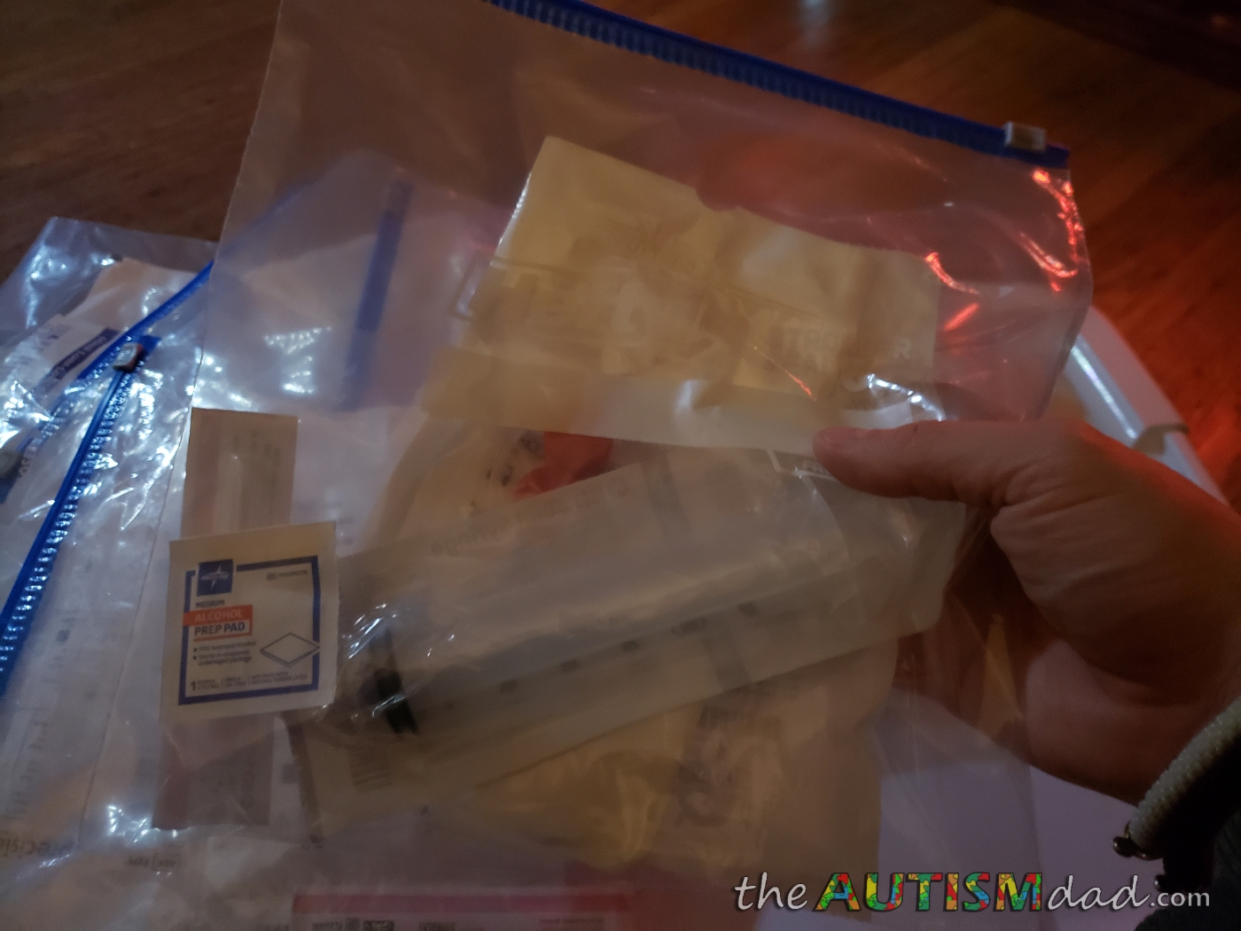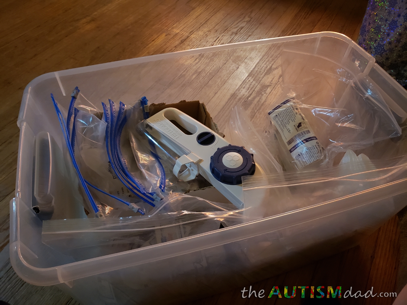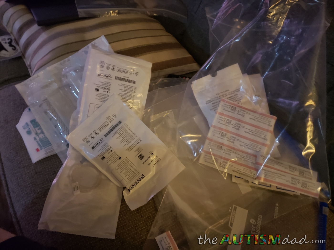 I decided a little while ago to setup infusion kits. This would make it super easy for Gavin to put his infusions together because everything is all self-contained.